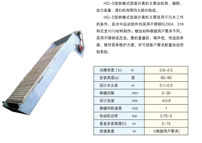 東營HQ-S型轉(zhuǎn)柵式固液分離機(jī)